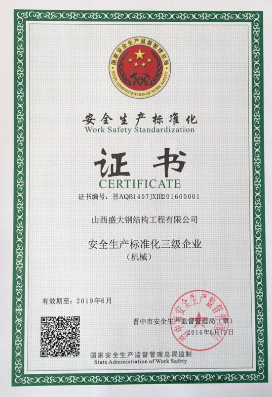 安全生產(chǎn)標(biāo)準(zhǔn)化證書(shū)